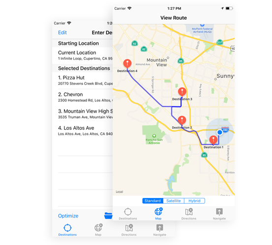 NavPoint allows you to add an unlimited number of destinations to your route. Whether you choose to let NavPoint optimize your route, or manually specify what order to visit each destination, NavPoint has you covered. Save and load as many routes as you want to keep your repetitive travels organized. No route is too large or too small; Add one destination or add hundreds — NavPoint will guide you every step of the way.
