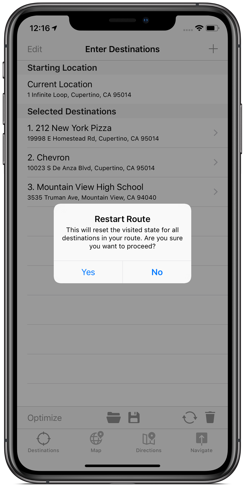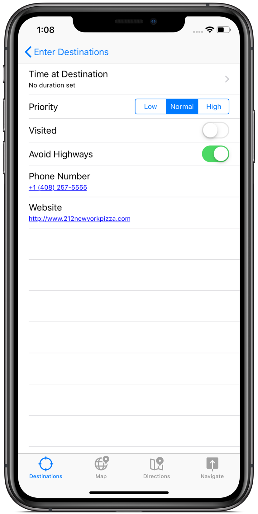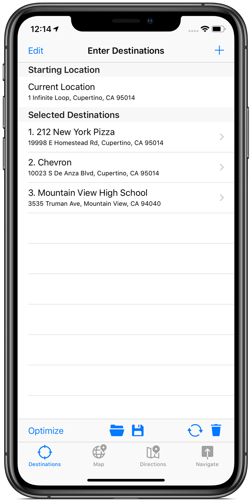 NavPoint optimizes your route to make the most out your time. Have a destination you prefer to visit before another? Simply drag it into any spot you want and NavPoint will generate the best route to get you to each one, in the order you prefer.